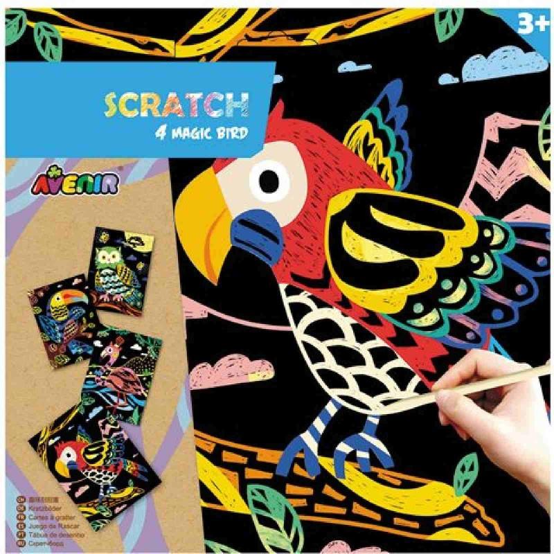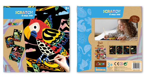 Avenir Scratch to zupełnie nowe podejście do prac ręcznych. Wyjątkowy arkusz, na którym tworzy się poprzez zdrapywanie warstwy wierzchniej, by odsłonić wielobarwną warstwę spodnią. Wydrapywanka to zabawka kreatywna najwyższych lotów, pozwalająca nie tylko tworzyć piękne prace, ale także dająca doświadczenia sensoryczne - dzięki użyciu odpowiedniego narzędzia i zachowywania się papieru podczas zabawy dziecko odbiera nowe wrażenia dotykowe. Wiek: 3+ W zestawie: 4 wydrapywanki, patyczek Wymiary opakowania: 23 x 23 cm