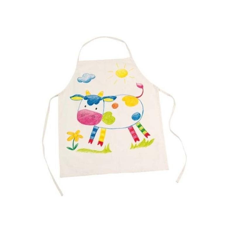 Biały fartuszek do pomalowania według własnego pomysłu. Praca w kuchni stanie się jeszcze przyjemniejsza, gdy na fartuszku pojawi się własnoręcznie narysowany obrazek.