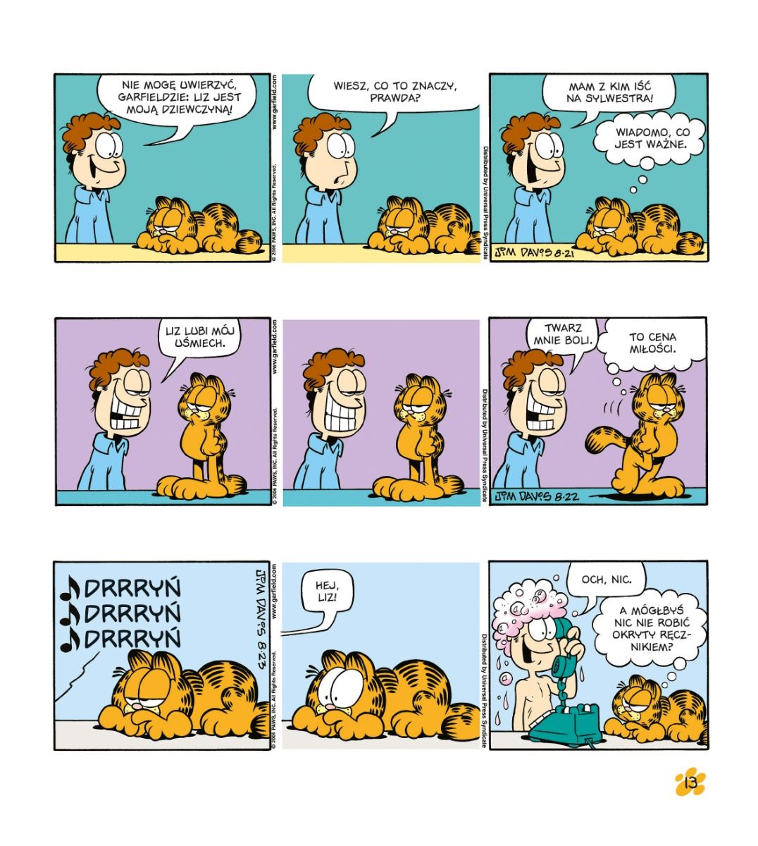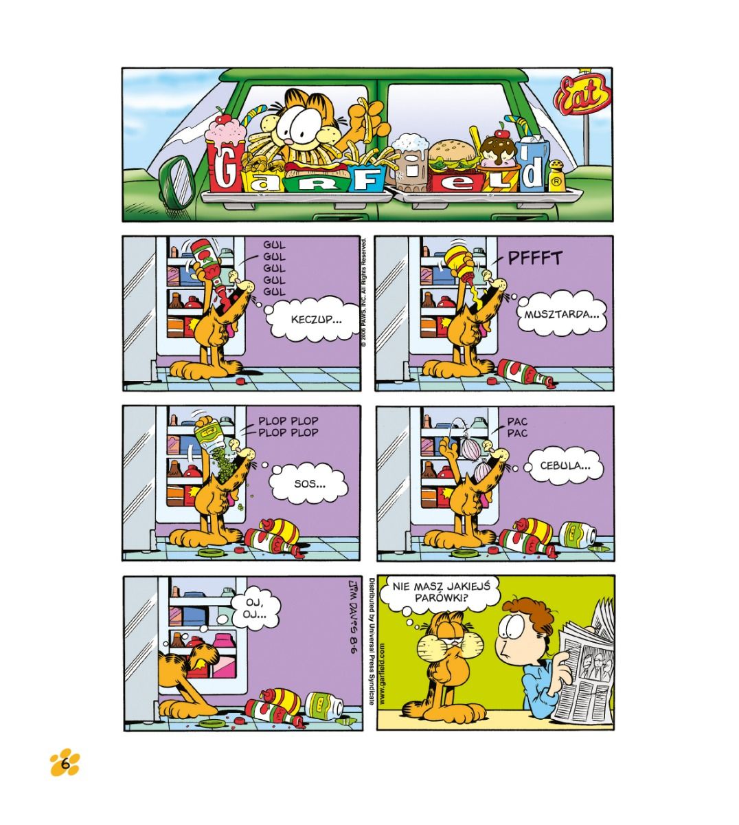 Garfield nie cofnie się przed niczym, by zaspokoić swój apetyt na zamęt i żart... by zaspokoić swych żarłocznych fanów. Garfieldowy cykl TŁUSTYCH KOCICH TRÓJPAKÓW stanowi kolekcję zebranych komiksowych pasków w nowym, kolorowym wydaniu. Garfield zmieniał się trochę, ale jedno pozostało niezmienne: jego gigantyczny apetyt na jedzenie i zabawę. Czeka was dużo szaleńczej radości z nienasyconym kotem – ponieważ nigdy dosyć zabawy.