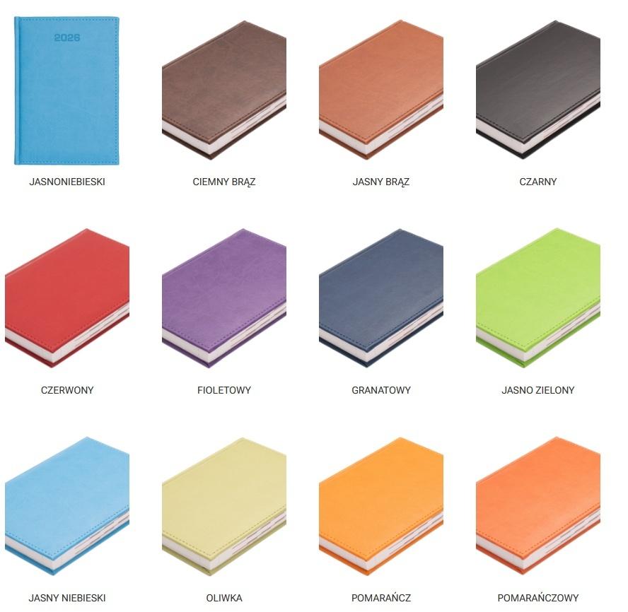 PL, GB, D, RUS, FR, imieniny i święta, fazy księżyca, wschody i zachody słońca, na dole kalendarium plan całego roku, przed każdym miesiącem terminarz miesięczny, część informacyjna 16 stron + miejsce na adresy, registry dwurzędowe nadrukowane