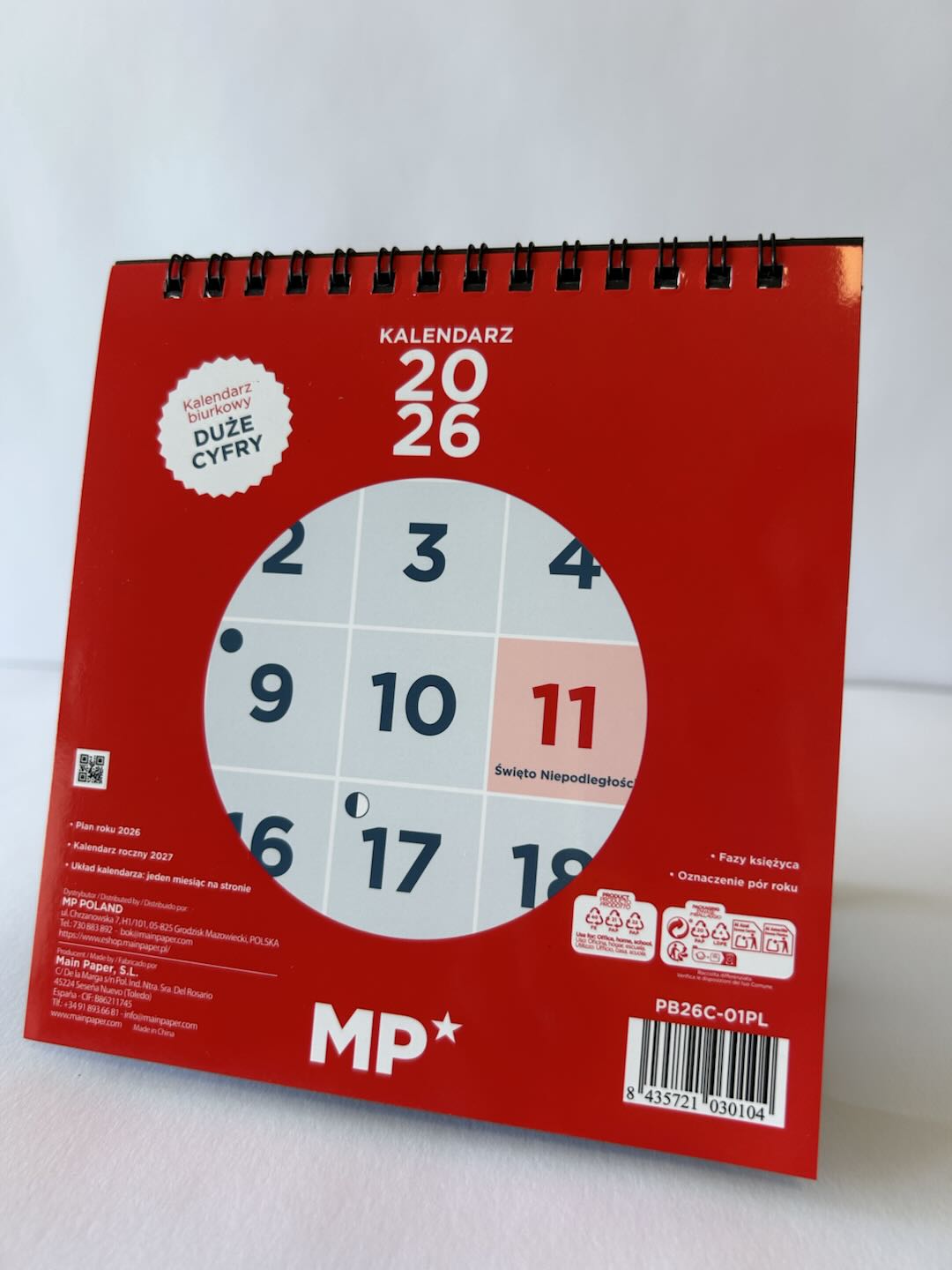 Kalendarz 2026 biurkowy 14x15cm czerwony