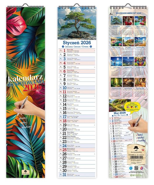 Kalendarz 2026 paskowy wąski do notowania