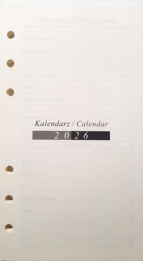Kalendarz 2026 Wkład do Organizera Terminarz 9,5x17,2cm WKLORS-07-Weekly