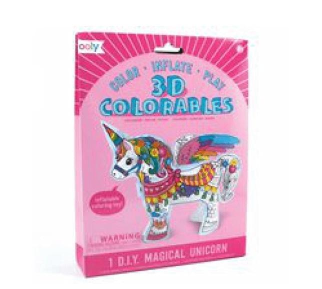 Zestaw Kolorowanki 3D Jednorożec zawiera dużego jednorożca ze skrzydłami oraz słomkę do nadmuchiwania. Kolorowankę 3D można wielokrotnie używać. Wypuść powietrze z zabawki słomką, aby ułatwić przechowywanie.