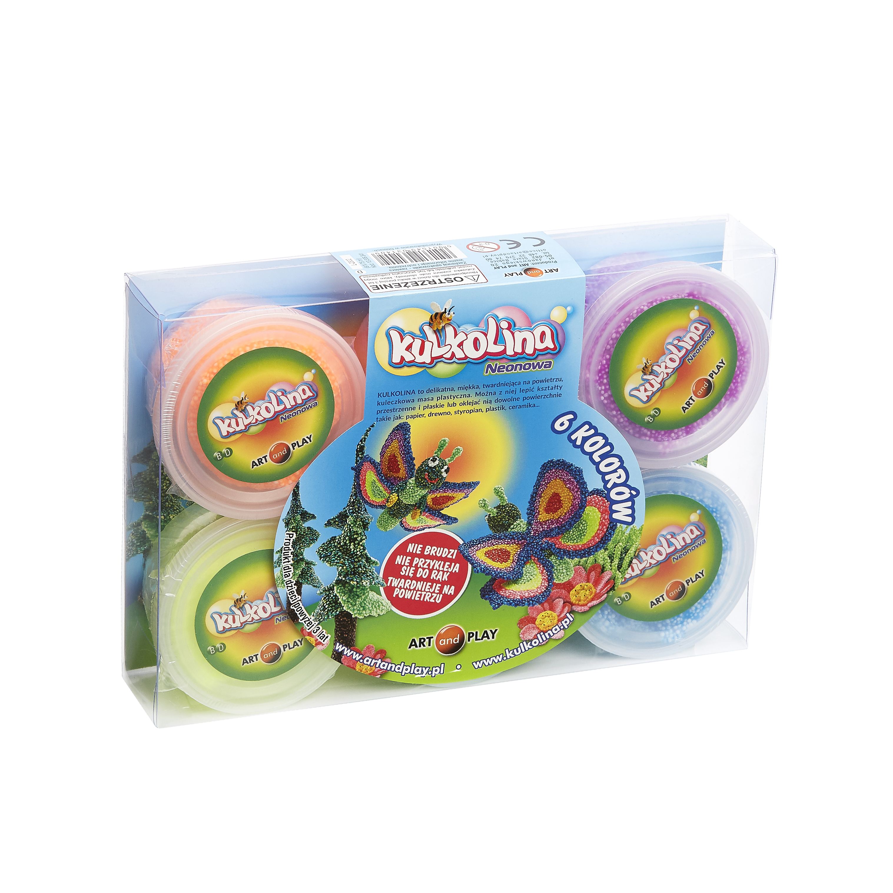 Kulkolina to delikatna, miękka, twardniejąca na powietrzu kuleczkowa masa plastyczna. Można z niej lepić kształty przestrzenne i płaskie lub oklejać nią dowolne powierzchnie takie jak: papier, drewno, styropian, plastik, ceramikę …