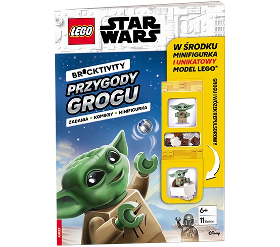 Znasz już uroczego Grogu? Nadal jest dzieckiem poruszającym się w latającym wózku, ale niech cię to nie zmyli: ten tajemniczy zielony stworek jest wyjątkowo potężny. Dołącz do niego w niesamowitych przygodach pełnych zagadek, zadań, komiksów i pomysłów na świetną zabawę! Użyj minifigurki na wybranych stronach i poczuj moc prawdziwej frajdy!