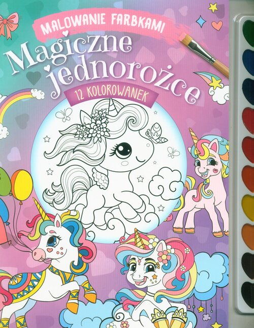 Kolorowanka z zestawem farb i pędzelkiem do malowania! Puść wodze fantazji, chwyć pędzelek do ręki i nadaj czarno-białym obrazkom niesamowite barwy. Kartki możesz wyrwać i ozdobić nimi pokój — Twoje dzieła pozostaną z Tobą na długo!