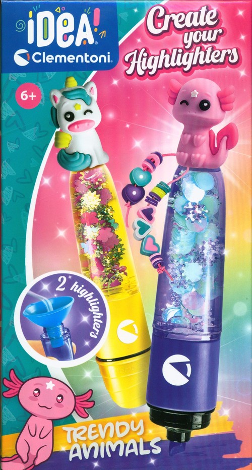 Oryginalny zestaw kreatywny służący do złożenia zakreślaczy i ich spersonalizowania przy pomocy różnych ozdób. Praktyczny, wieloelementowy zestaw składający się z: markerów, tuszy w różnych kolorach, figurek i wszystkich narzędzi potrzebnych do ich wykonania. Koncepcja będąca czymś znacznie więcej niż zwykłym zadaniem ozdobienia. Teraz można tworzyć, dając upust wyobraźni. Opracowano i zaprojektowano we Włoszech.