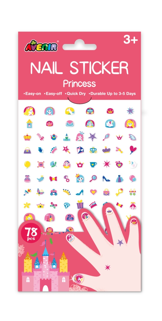 Zestaw ozdobnych naklejek na paznokcie od marki Avenir powstał specjalnie dla młodych dam. Będzie to wspaniały prezent dla każdej modnisi! Zestaw zawiera 78 tematycznych naklejek na paznokcie w różnych kształtach i rozmiarach. Naklejki są łatwe w aplikacji, utrzymują się 3-5 dni. Motyw księżniczek spodoba się dziewczynkom. Wiek: 3+. Wymiary opakowania: 13 x 6,5 cm