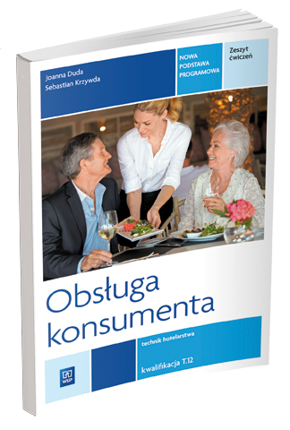 Zeszyt ćwiczeń do nauki zawodu technik hotelarstwa na poziomie technikum w zakresie kwalifikacji T.12 (Obsługa gości w obiekcie świadczącym usługi hotelarskie). Omawia zagadnienia związane z praktyczną stroną obsługi konsumenta. Pokazuje techniki serwowania potraw, nakrywania do stołu, zdobienia dań. Wprowadza terminy angielskie i francuskie używane w branży hotelarskiej i gastronomicznej. Wprowadza podstawy protokołu dyplomatycznego. Zeszyt zawiera wiele wskazówek, ułatwiających wykonanie zadań, i liczne ilustracje, które pomagają w zrozumieniu omawianych treści i stanowią wzór do naśladowania przy nauce poszczególnych technik związanych z branżą hotelarską.
