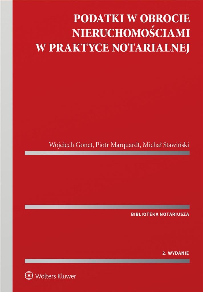 Książka zawiera szczegółowe omówienie podatkowych konsekwencji obrotu nieruchomościami i ustanowienia na nich ograniczonych praw rzeczowych w zakresie podatku do towarów i usług, podatku od czynności cywilnoprawnych, podatku od spadków i darowizn, podatków dochodów od osób fizycznych i prawnych. W opracowaniu zamieszczono wiele przykładów dotyczących obliczenia poszczególnych podatków, obrazujących przedstawiane zagadnienia. W obecnym wydaniu uwzględniono zmiany legislacyjne dotyczące m.in. zwolnienia od podatku od czynności cywilnoprawnych przy nabywaniu pierwszego lokalu mieszkalnego lub domu jednorodzinnego, opodatkowania podatkiem od czynności cywilnoprawnych umów sprzedaży co najmniej sześciu lokali mieszkalnych na rzecz jednego kupującego oraz zmiany stawek podatkowych w zakresie podatku od spadków i darowizn. Publikacja jest przeznaczona dla notariuszy, doradców podatkowych, zastępców notarialnych, aplikantów notarialnych i pracowników urzędów skarbowych.