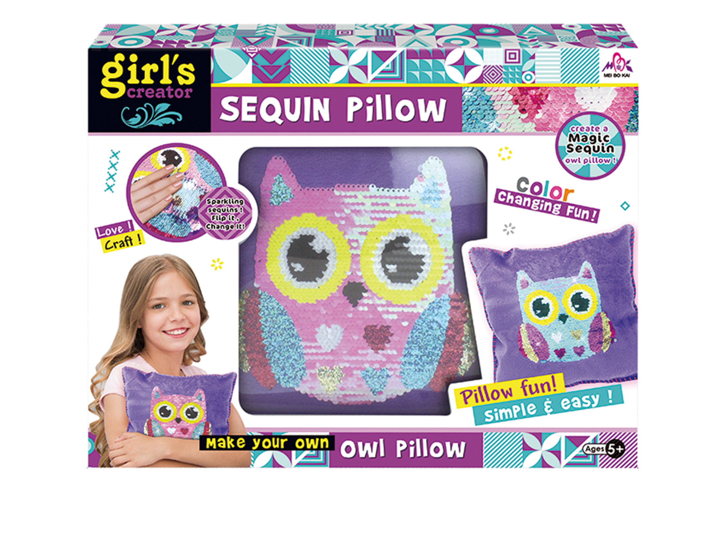 Poduszka z cekinami sowa do samodzielnego uszycia