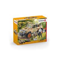 Wybierz się na szaloną przygodę ze strażnikiem Davidem i jego wiernym towarzyszem, młodym szympansem! Wyciągany kołowrót, który można umieścić z przodu lub z tyłu samochodu, dostarczy wiele radości przy zabawie. Zestaw z samochodem terenowym, strażnikiem Davidem, szympansem i wspaniałymi akcesoriami.