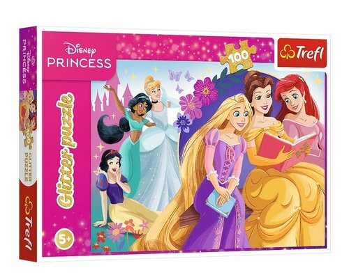 Blask magii przyjaźni to puzzle z serii Glitter, składające się ze 100 elementów. Układanka została pokryta delikatnym, złotym brokatem, który sprawia, że zarówno opakowanie, jak i poszczególne elementy pięknie się mienią! Po ułożeniu puzzli powstanie obrazek o wymiarach 410x278 mm, który zachwyci wszystkich małych fanów bajek o Księżniczkach.