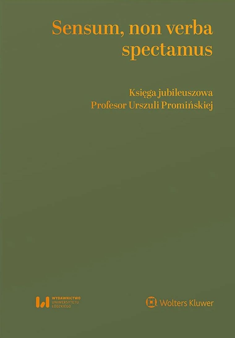 Prezentowana księga została przygotowana z okazji jubileuszu 50-lecia pracy naukowej Profesor Urszuli Promińskiej, pracownika naukowego Wydziału Prawa i Administracji Uniwersytetu Łódzkiego, uznanej specjalistki w dziedzinie prawa handlowego oraz prawa własności przemysłowej. Tytuł księgi, odwołujący się do rzymskiej sentencji "patrzymy na sens, a nie na słowa", w pełni oddaje istotę naukowej refleksji Jubilatki, której bogaty dorobek odznacza się nie tylko charakterystyczną precyzją wypowiedzi, ale również szerszym spojrzeniem na analizowane konstrukcje prawne, ich miejsce w systemie oraz cele ustawodawcy. Księga jest zbiorem kilkudziesięciu tekstów poświęconych problematyce bliskiej Jubilatce, a zatem prawa cywilnego, prawa handlowego oraz prawa własności intelektualnej. Autorami poszczególnych rozdziałów są uznani reprezentanci środowiska naukowego z całej Polski, a także przedstawiciele zawodów prawniczych, którzy spotkali na swej zawodowej drodze Jubilatkę, w tym Jej współpracownicy, koledzy oraz uczniowie. Księga skierowana jest zarówno do teoretyków, jak i praktyków prawa - sędziów, adwokatów, radców prawnych oraz rzeczników patentowych zajmujących się problematyką prawa handlowego oraz prawa własności intelektualnej.
