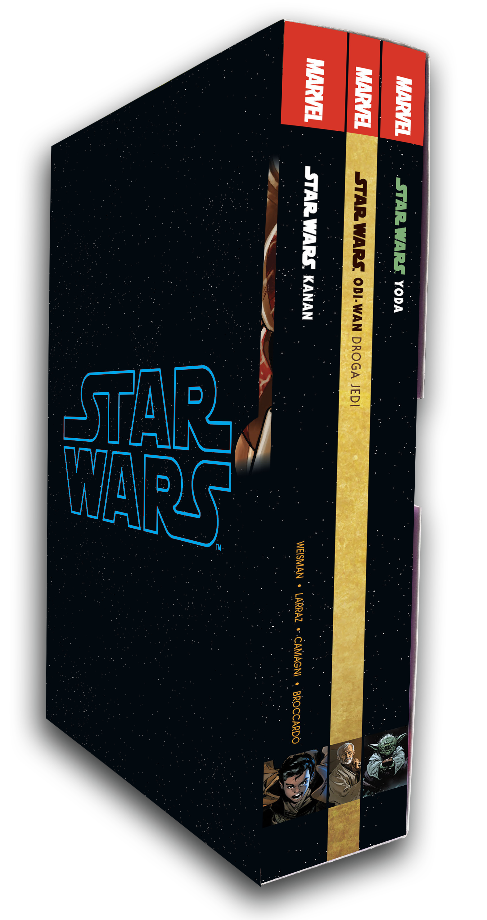 Pakiet "Star Wars" obejmuje 3 komiksy: "Star War. Obi-Wan - Droga Jedi", "Star Wars. Kanan - Ostatni padawan", "Star Wars. Yoda". Poznajemy trzymające w napięciu opowieści o Obi-Wanie Kenobim jako młodziku w zakonie, o próbach, którym był poddawany w roli padawana, a później rycerza, o wojnach klonów i o najwcześniejszych wyzwaniach, z którymi musiał się zmierzyć, gdy był już prawdziwym mistrzem i użytkownikiem Mocy. Komiks, którego bohaterem jest Kanan Jarrus, przedstawia burzliwe losy zuchwałego przywódcy załogi "Ducha", walczącej o wolność przeciwko potędze Imperium Galaktycznego, a także jego wcześniejsze przygody, kiedy nazywał się Caleb Dume i był padawanem Jedi szkolącym się pod okiem mistrzyni Depy Billaby. Z kolei album "Yoda" to emocjonująca historia wielkiej legendy Jedi, mistrza i nauczyciela wielu pokoleń Jedi, który teraz żyje na wygnaniu dręczony przez swoją przeszłość.