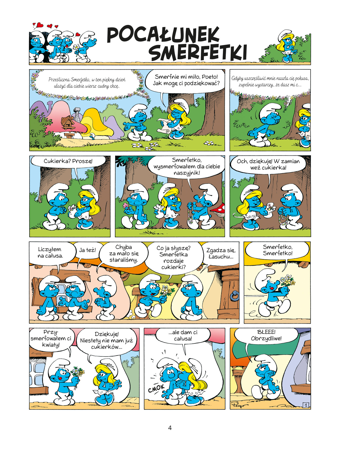 Wśród Smerfów jest tylko jedna dziewczyna – niesamowita, pomysłowa, mądra, współczująca, miła i odważna Smerfetka. Bez niej nie może się obejść żadna ważniejsza historia o mieszkańcach wioski w środku lasu. Tym razem pozna, czym jest magiczny żabi pocałunek, obroni wędrownego grajka, rozpocznie niebezpieczną zabawę w Czerwonego Smerfokapturka, zaopiekuje się małą sową i śmiało wyruszy do zamku pełnego potworów. Znowu też będzie broniła swojego zdania oraz walczyła o sprawiedliwość, nawet wbrew woli przyjaciół. Oto cała Smerfetka!