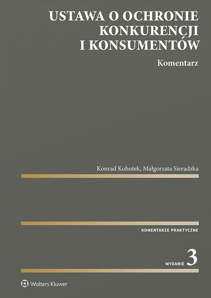 Komentarz stanowi praktyczne źródło informacji o sposobie stosowania przepisów omawianej ustawy. Aktualne wydanie komentarza uwzględnia nie tylko zmiany wprowadzone w drodze nowelizacji z 9.03.2023 r. która implementuje dyrektywę 2019/1 (tzw. dyrektywa ECN). Od jego drugiego wydania (w 2014 r.) ustawa o ochronie konkurencji i konsumentów była kilkukrotnie modyfikowana, a niektóre ze zmian były relatywnie obszerne (np. te dotyczące administracyjnej kontroli wzorców umownych). W książce uwzględniono także najnowsze zmiany wynikające z ustawy o zmianie ustawy o dochodzeniu roszczeń w postępowaniu grupowym oraz niektórych innych ustaw. Wskazany akt nowelizuje także ustawę o ochronie konkurencji i konsumentów. W jej wyniku dokonano implementacji dyrektywy Parlamentu Europejskiego i Rady (UE) 2020/1828 z 25.11.2020 r. w sprawie powództw przedstawicielskich wytaczanych w celu ochrony zbiorowych interesów konsumentów i uchylającej dyrektywę 2009/22/WE. Dyrektywa 2020/1828 unowocześnia i wzmacnia mechanizmy ochrony zbiorowych interesów konsumentów. Na jej podstawie upoważnione podmioty działające na rzecz ochrony konsumentów, wyznaczone przez państwa członkowskie UE, mogą występować z powództwami przedstawicielskimi, czyli powództwami wytaczanymi w imieniu konsumentów w celu doprowadzenia do zaprzestania stosowania przez przedsiębiorcę szkodliwej praktyki lub w celu zastosowania środka naprawczego w związku z jej stosowaniem. Publikacja szczegółowo prezentuje nowe regulacje dotyczą wprowadzenie zasad i trybu przeciwdziałania stosowaniu niedozwolonych postanowień wzorców umów, wprowadzenie nowych definicji legalnych, np. kartelu), możliwości przypisania odpowiedzialności antymonopolowej osobie fizycznej, która jako przedsiębiorca naruszyła określone przepisy komentowanej ustawy, poszerzenie katalogu najpoważniejszych wertykalnych ograniczeń konkurencji o ograniczenia pozbawiające nabywcę możliwości skutecznej sprzedaży online, a także rozbudowanie miękkich regulacji dotyczących dystrybucji internetowej, poszerzenie zakresu podmiotów ponoszących odpowiedzialność antymonopolową za dopuszczenie się naruszenia; przypisanie takiej odpowiedzialności przedsiębiorcy wywierającemu decydujący wpływ na "bezpośredniego" naruszyciela, decyzji Prezesa UOKiK w sprawach o uznanie postanowień wzorca umowy za niedozwolone, zmiany definicji praktyki naruszającej zbiorowe interesy konsumentów, missellingu jako nowej praktyki naruszającej zbiorowe interesy konsumentów, zwiększenia niezależności Prezesa UOKiK, w tym wprowadzenie kadencyjności tego organu, ustawowe wprowadzenie instytucji szczegółowego uzasadnienia zarzutów, tzw. SUZ, możliwości występowania do przedsiębiorców także w sprawach z zakresu ochrony konsumentów, poszerzenia o "nieprzedsiębiorców" kręgu podmiotów mogących zostać zobowiązanymi do udzielenia informacji Prezesowi UOKiK, w tym wprowadzenie instytucji wolności od samooskarżenia, ograniczenia udostępniania materiału dowodowego, postępowania w sprawach o uznanie postanowień wzorca umowy za niedozwolone, poszerzenia kręgu podmiotów mogących złożyć zawiadomienie o podejrzeniu stosowania praktyk naruszających zbiorowe interesy konsumentów o zagraniczne organizacje wpisane na listę organizacji uprawnionych w państwach członkowskich