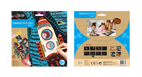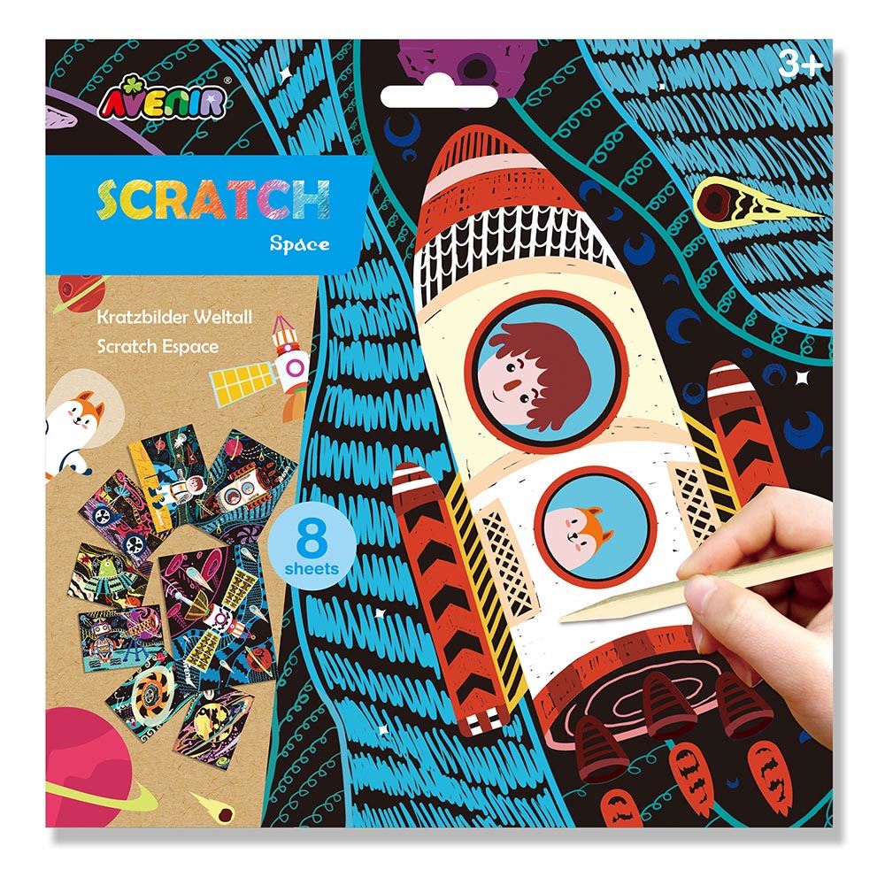 Avenir Scratch to zupełnie nowe podejście do prac ręcznych. Wyjątkowy arkusz, na którym tworzy się poprzez zdrapywanie warstwy wierzchniej, by odsłonić wielobarwną warstwę spodnią. Wydrapywanka to zabawka kreatywna najwyższych lotów, pozwalająca nie tylko tworzyć piękne prace, ale także dająca doświadczenia sensoryczne - dzięki użyciu odpowiedniego narzędzia i zachowywania się papieru podczas zabawy dziecko odbiera nowe wrażenia dotykowe. . W zestawie: 4 wydrapywanki, patyczek, kolorowe muliny.