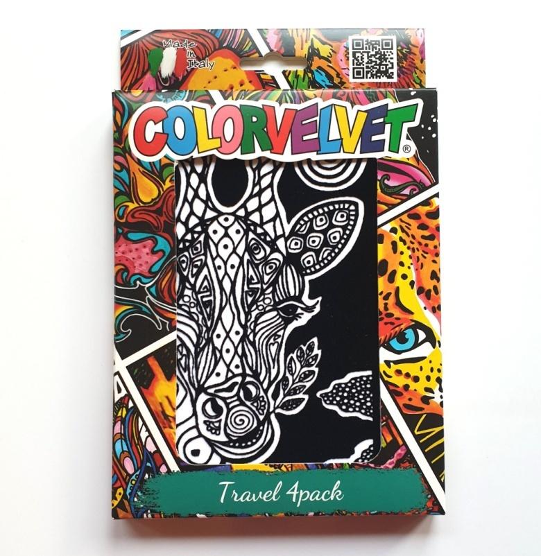 Zestaw 4 małych kolorowanek welwetowych wraz z flamastrami - idealny towarzysz podróży.