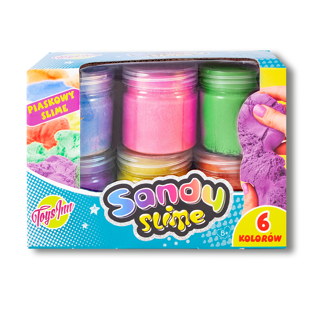 Sandy Slime to doskonała zabawa sensoryczna. Piaskowe Slimy są bardzo przyjemne, miękkie w dotyku i nie przyklejają się do rąk, zatem do woli ugniataj, rozciągaj i mieszaj kolory. W zestawie dostępnych jest 6 kolorów gotowych Slimów, o wadze po około 160 g. Zestaw jest odpowiedni dla dzieci w wieku 5+.